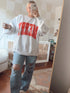 Sweatshirts fit true to size. If you would like an oversized fit, please go up a size! Sweatshirt worn by model is a size X-Large. (Model is 5'6")